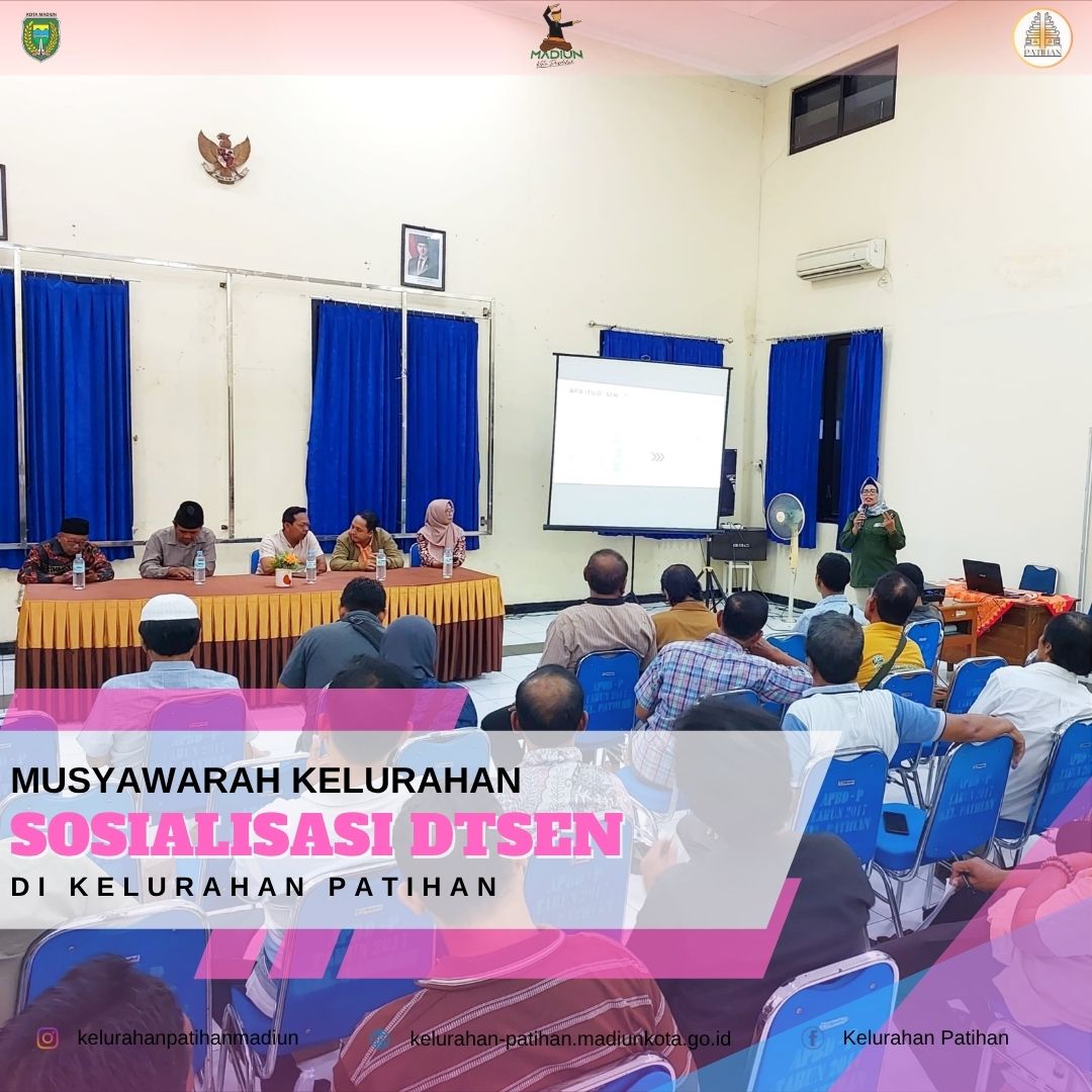 Kelurahan Patihan, Kecamatan Manguharjo, Kota Madiun menggelar Musyawarah Kelurahan (Muskel) pada 25 Juni 2025 untuk sosialisasi perubahan Data Terpadu Kesejahteraan Sosial (DTKS) menjadi Data Tunggal Sosial Ekonomi Nasional (DTSEN).
