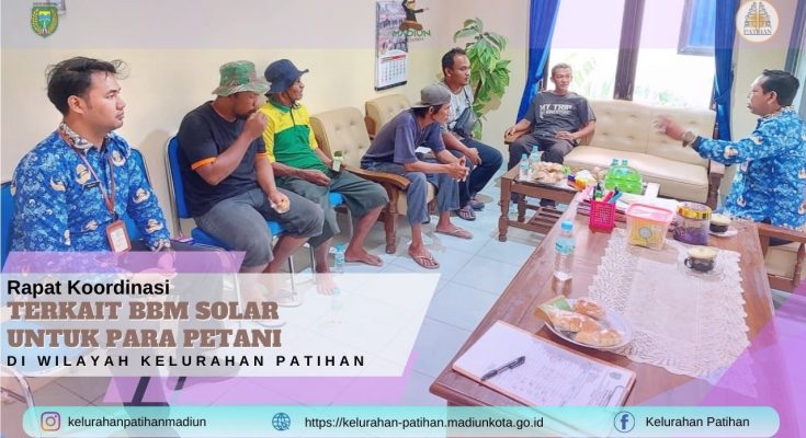 Patihan, Rabu 17 September 2025 – Bertempat di kantor Kelurahan Patihan, Kecamatan Manguharjo, dilaksanakan rapat koordinasi dan pembinaan terkait pemanfaatan BBM Solar bagi petani di wilayah Kelurahan Patihan.